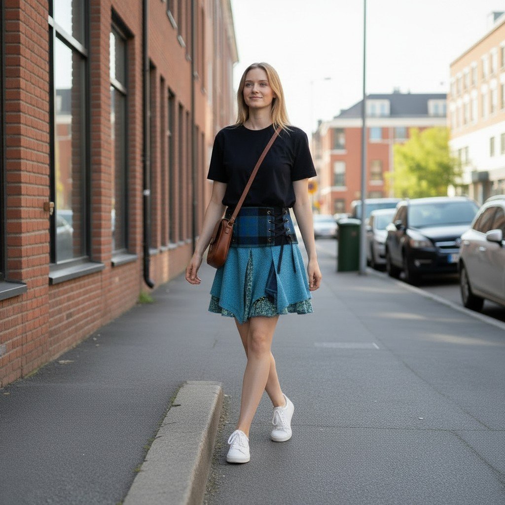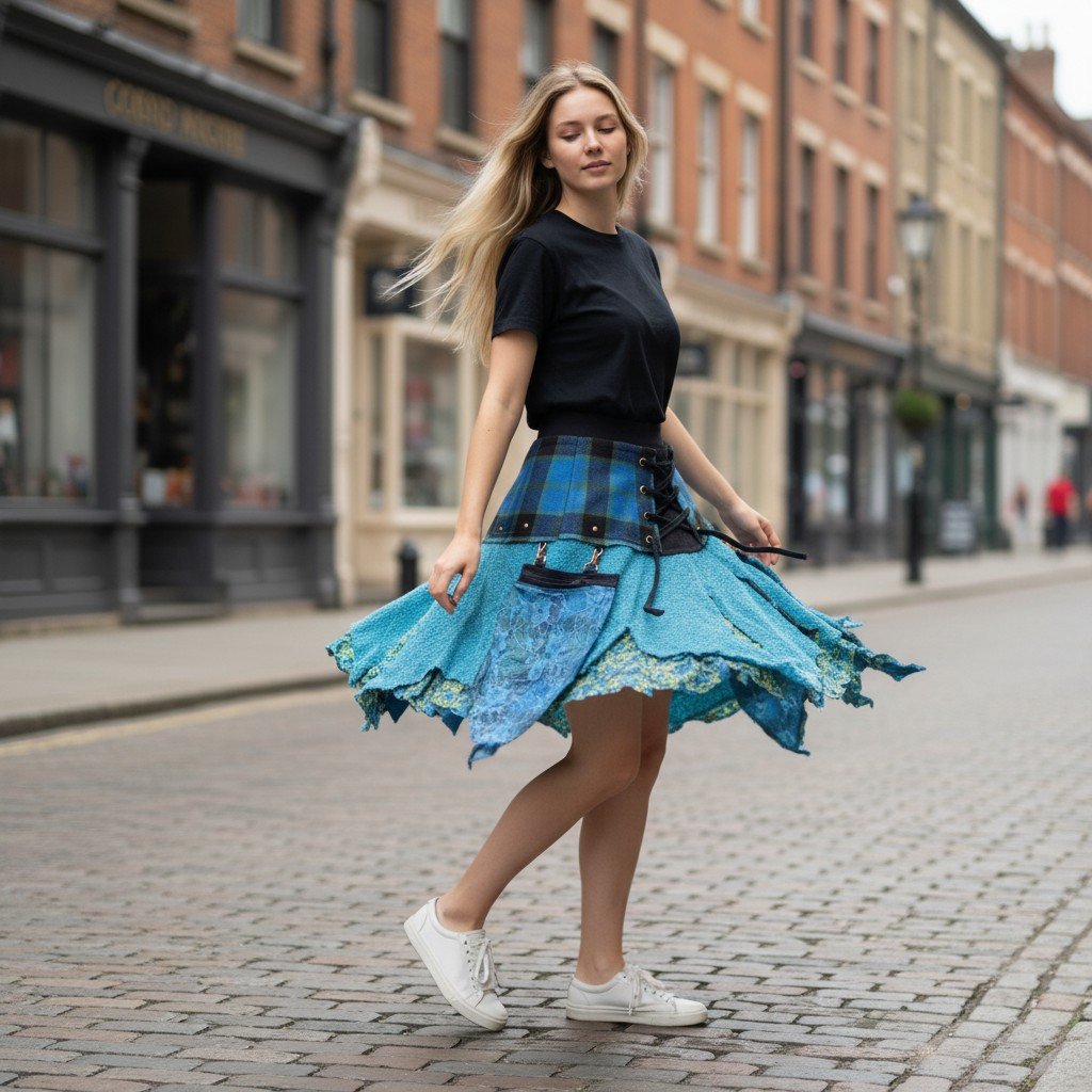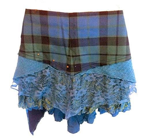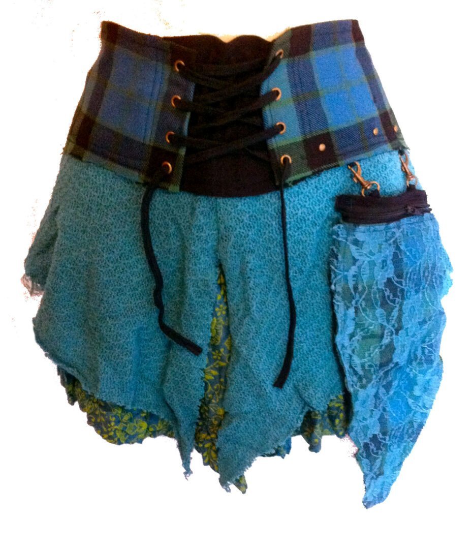 The Albannach Punk Story: From the Highlands to the HimalayasThis is not your average tartan skirt. The Terrapin Trading “Albannach Punk” range represents a unique artisan journey. We start by sourcing genuine, heavy-weight wool tartan woven in Scotland. This premium fabric is then shipped to our fair-trade dressmaking partners in the mountains of Nepal, where it is hand-layered with cotton, knit fabrics, and delicate lace to create a truly global “Tribal Punk” masterpiece. Designed for VersatilityThe signature feature of this skirt is the front lace-up system. Beyond its aesthetic appeal, it allows the garment to be highly adjustable. You can cinch it tight for a high-waisted look or loosen the laces to wear it lower on the hips over leggings or trousers. Unique Artisan Character & Shabby Chic FinishPlease be aware that these are “one-off” designer pieces. We employ a deliberate “frayed finish” on the wool and lace edges to give the skirt its characteristic “shabby chic” and lived-in appearance. IMPORTANT: Current Color Stock WarningAs every skirt is unique, the tartan pattern you receive will vary from the one pictured.Our current stock is comprised of moody, darker tonespredominantly deep forest greens, navy, and charcoal blacks.There are no “bright” red or yellow tartans in this batch. Comprehensive Sizing Guide: Medium / Large (M/L): Waist:86cm – 91.5cm (34″ – 36″) Hips:101.5cm (40″) Length:35.5cm – 43cm (14″ – 17″) UK Size:12 – 14 EU Size:40 – 42 US Size:8 – 10 Pocket Attachment:Approx 30cm (11.8″) Long | 10cm (3.9″) at Zip. Sizing Tip:If you are between sizes, we recommend choosing based on how you intend to wear it. Choose the smaller size for a high-waisted look, or the larger size if you prefer it sitting lower on the hips. ADAPTABLE LACE-UP WAIST:Features a rustic, corset-style lace-up front that allows for a highly adjustable fit. This versatile design allows the skirt to comfortably accommodate a range of waist sizes within each bracket, ensuring a secure and flattering silhouette for various body types. SCOTTISH WOOL & NEPALESE CRAFT:A unique global collaboration. We source genuine, high-quality wool tartan made in Scotland and send it to our talented fair-trade dressmakers in Nepal to be handcrafted into this original Albannach Punk design. DETACHABLE UTILITY POCKET:Includes a removable side pouch with lace detailing, perfect for essentials. The pocket attachment measures approximately 30cm (11.8″) in length and 10cm (3.9″) at the zip. Please note: as an artisan product, pocket dimensions may vary slightly. VERSATILE MULTI-WAY WEAR:The unique layered construction and adjustable waist mean it can be styled in a number of waysworn high on the waist, lower on the hips, or layered over leggings and trousers for a true tribal-punk or steampunk look. UNIQUE VARIATION (PLEASE READ):Every skirt is a “one-off” creation.Current stock features sophisticated dark tones, including deep forest greens, navy blues, and blacks.As these are handcrafted, the specific tartan pattern and color will vary from the photos, ensuring your piece is entirely unique. SHABBY CHIC AESTHETIC:Designed with a deliberate “frayed finish” to the wool and lace layers to achieve a raw, “shabby chic” appearance. This intentional “rustic” styling is a hallmark of the Terrapin Trading alternative range.
