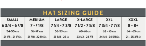 This cap is adjustable with three snap fasteners at the back, giving internal circumferences of approx 60 cm – 64 cm (22 – 23.5″)