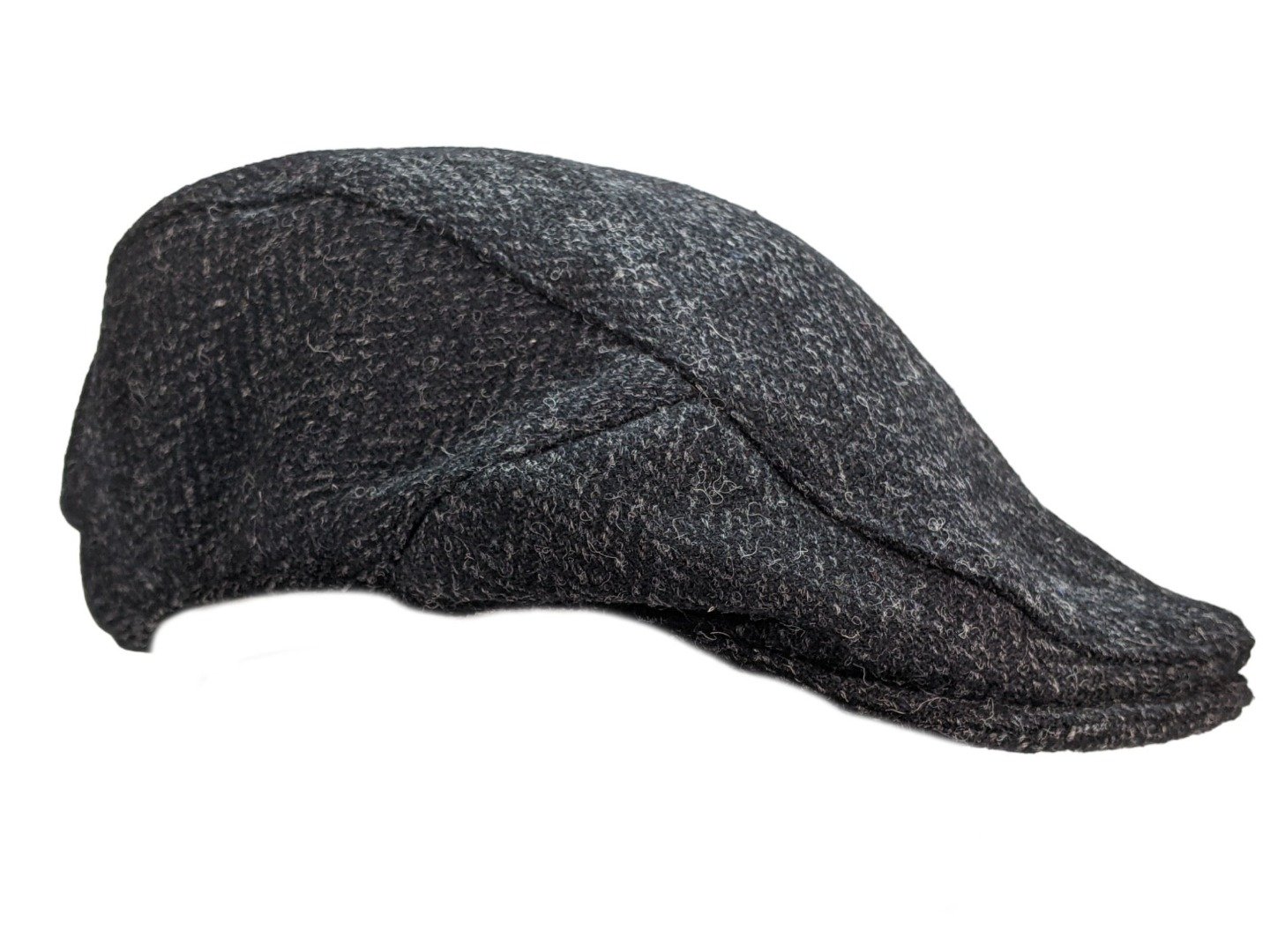 Tweed Flat Cap Charcoal Herringbone Handwoven Harris Tweed