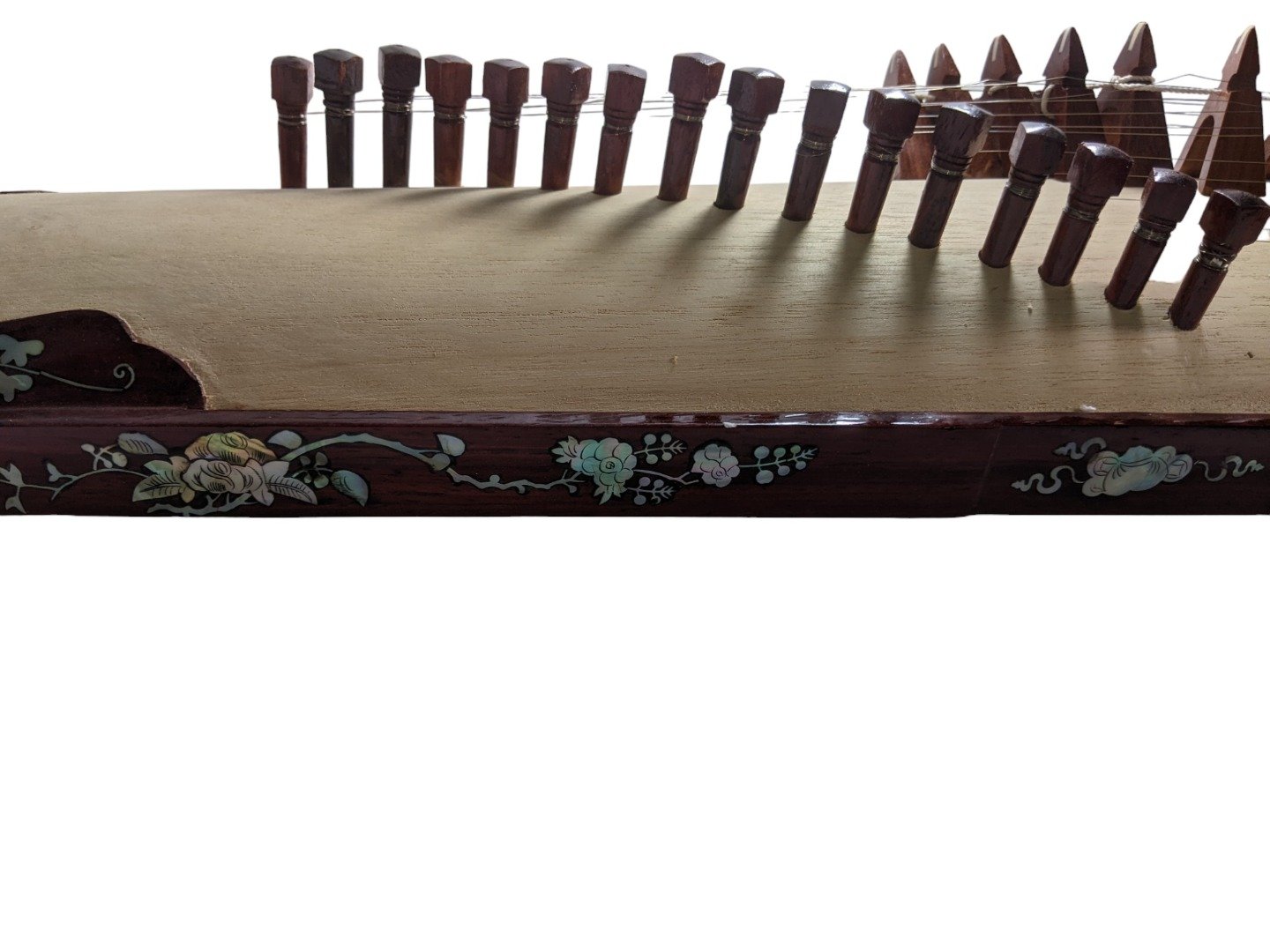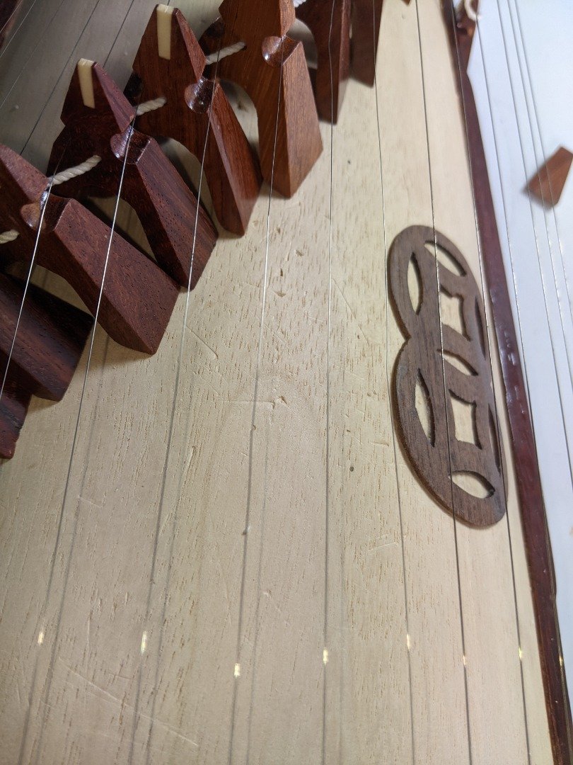 Vietnamese Dan Tranh. Please note: this has had a small repair on a section of the bridge. it was a clean break which was repaired with wood glue….