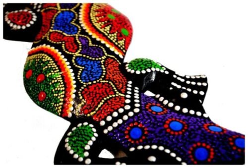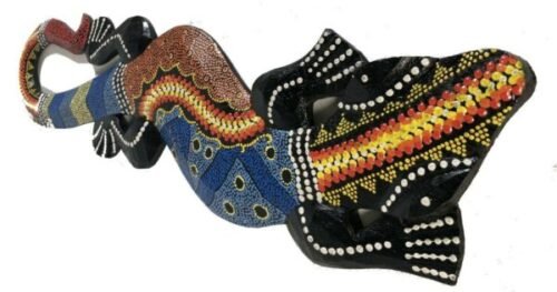 Wooden Gecko 15cm – Hand carved and painted Animal Wall art. Hand-painted in the distinctive, traditional Indonesian style.