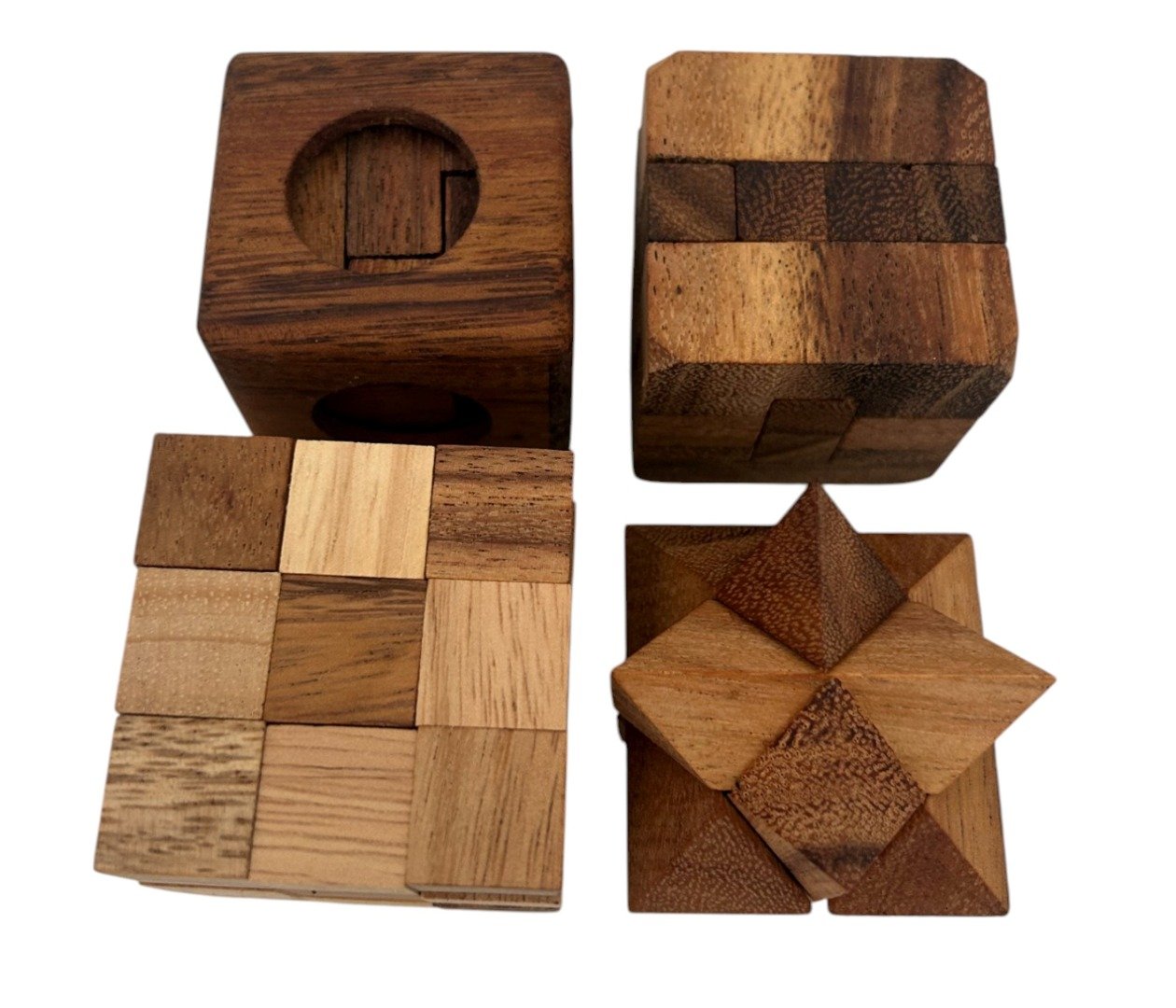 Wooden IQ Puzzles Set | of 4 Handcrafted Cube Game