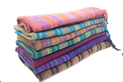 Please note colours may vary from that pictured – the shawls are unique and so are listed under a general category of colour – We have found listing each variation individually impractical so are now listing in the general style or colour- can be returned if not suitable. e.g. the blue may have some yellow in it etc. If it says oranges then it may encompass a range of orange blankets which may have other colours within the pattern.